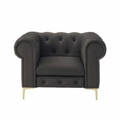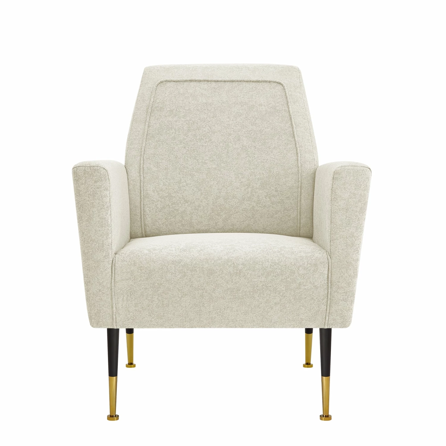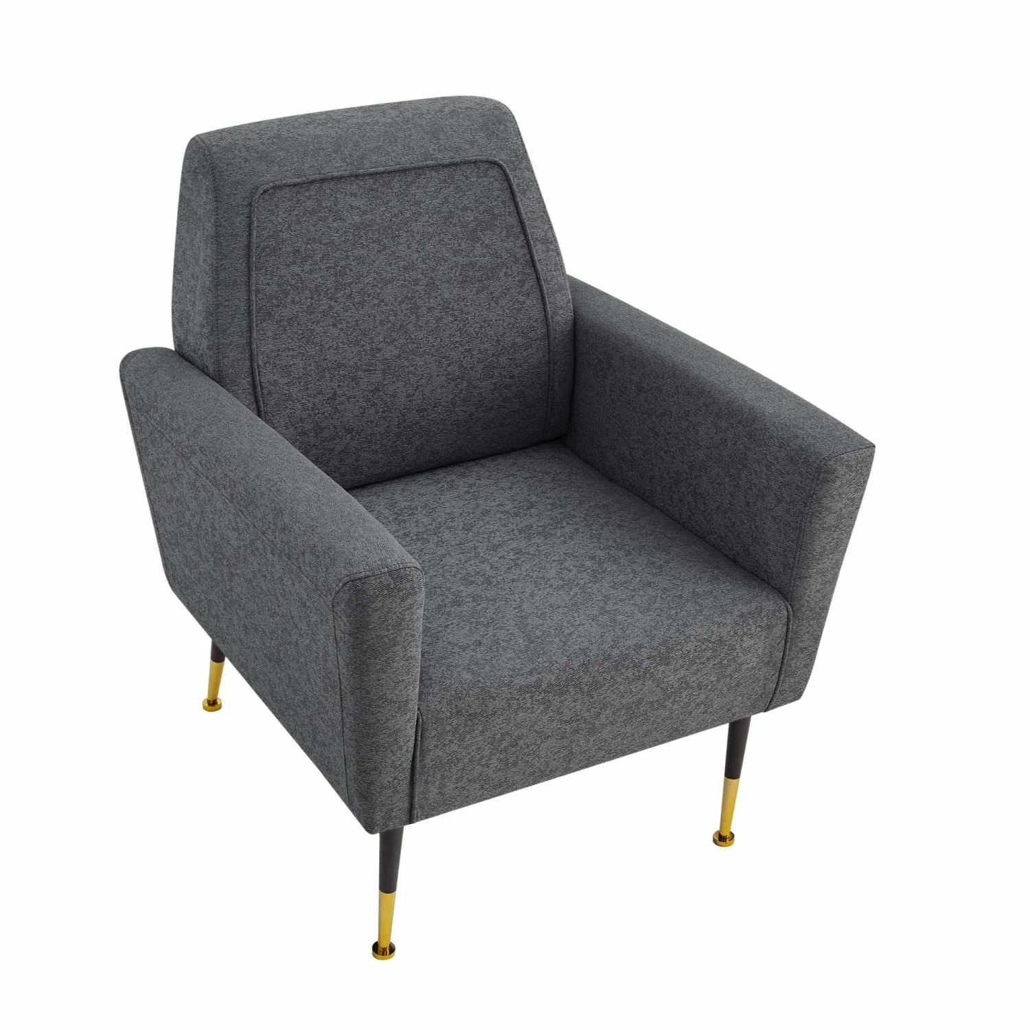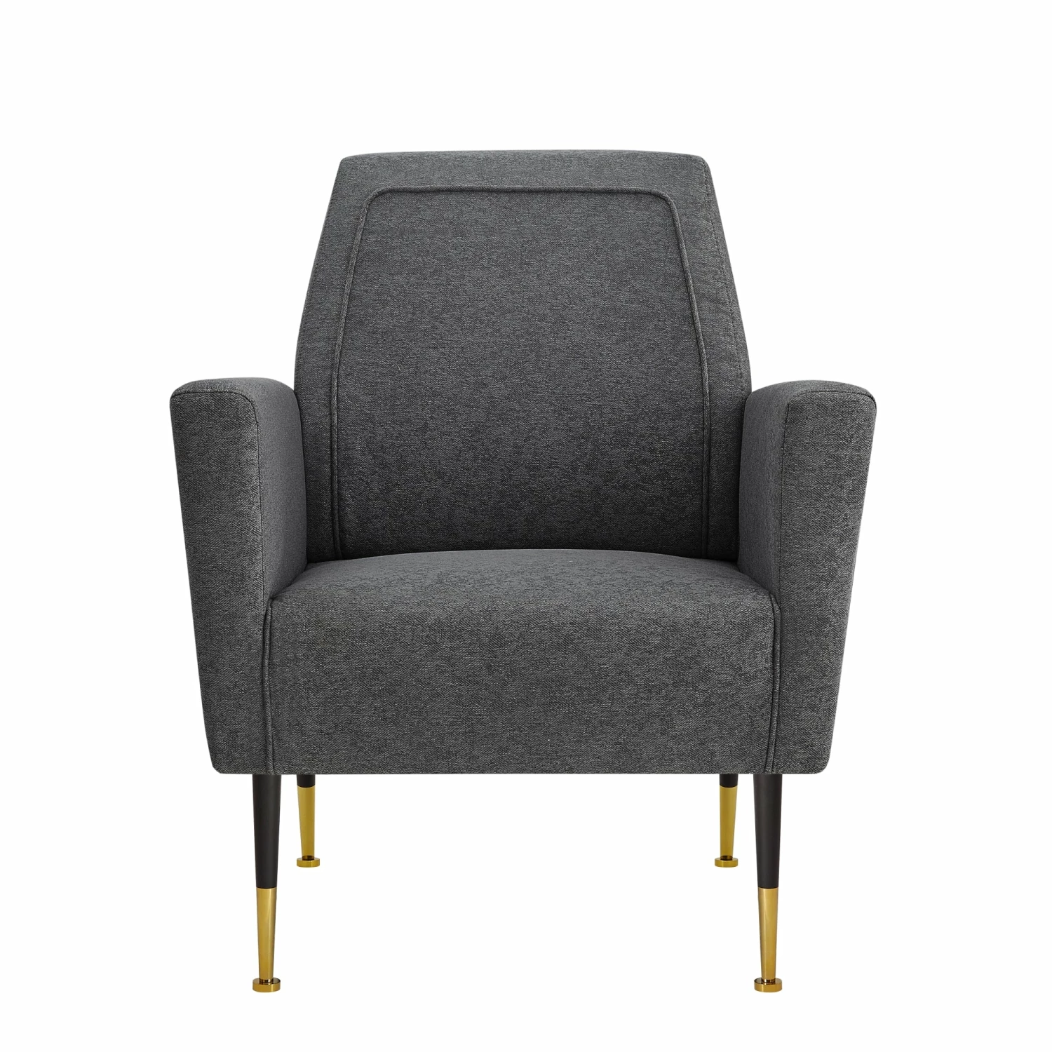 Give your home a glamorous makeover with this elite accent chair from our newest collection. Sporting a stylishly crafted piping detail and relaxing square arms, this lounge chair adds a refined look and feel to your home. This gorgeous modern chair also comes with sturdy tapered legs with gold tips and a coil spring mechanism for a solid and ultra-comfy sitting experience. Luxurious upholstery complemented with high-caliber craftsmanship makes this side chair a perfect standalone piece or a chic accent to existing decor. Available in velvet and linen fabric.