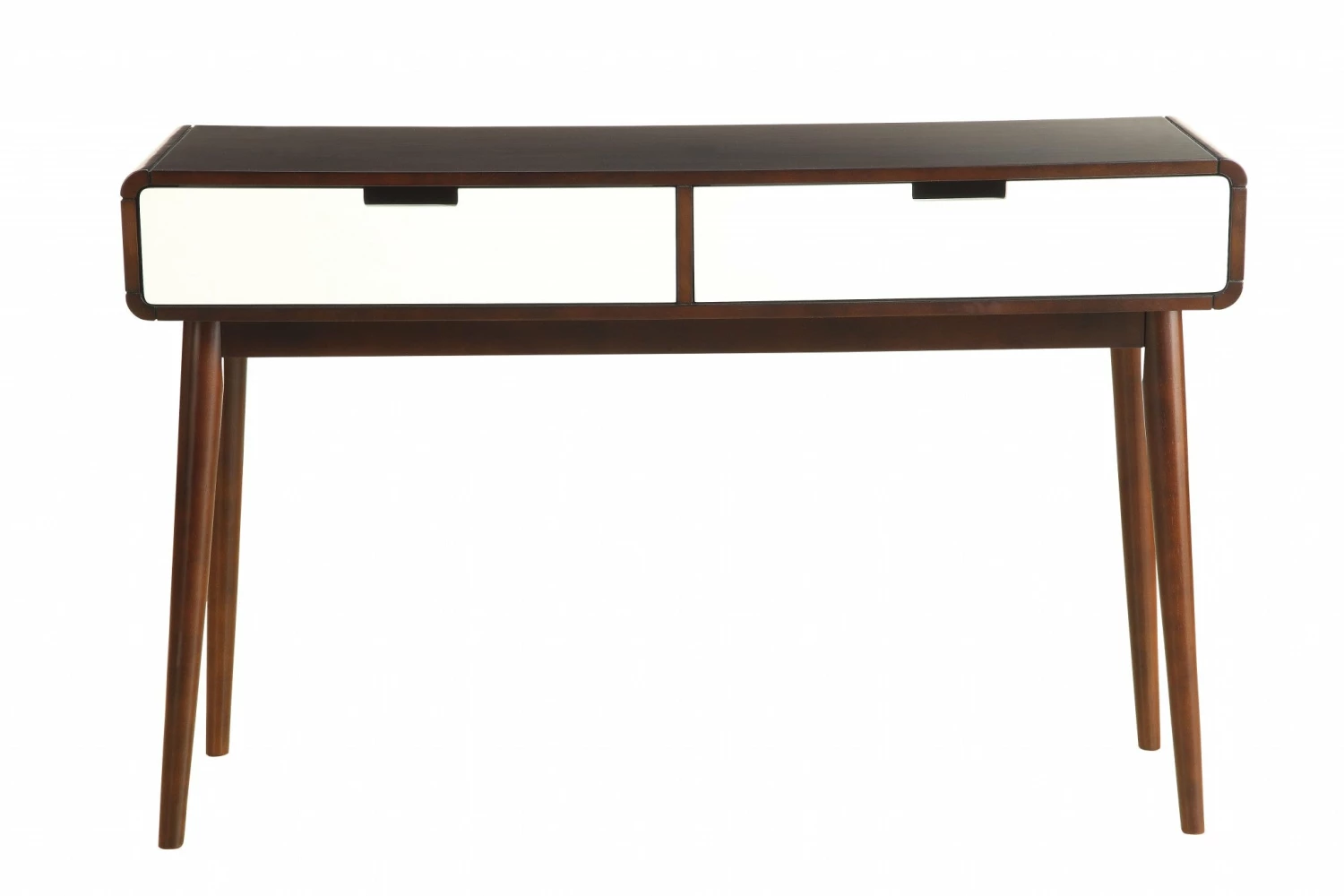 Our Mahogany and White Double Drawer Console Table is a great addition to any living space, entrance hall or hallway. Its block color design is eye-catching yet well matched to most color schemes thanks to it’s mahogany wood colour frame and legs, and white double drawer section. Perfect for displaying flower vases or photo frames on top, while the drawers allow you to tidy away essentials neatly. 30″ x 47″ x 15.75″