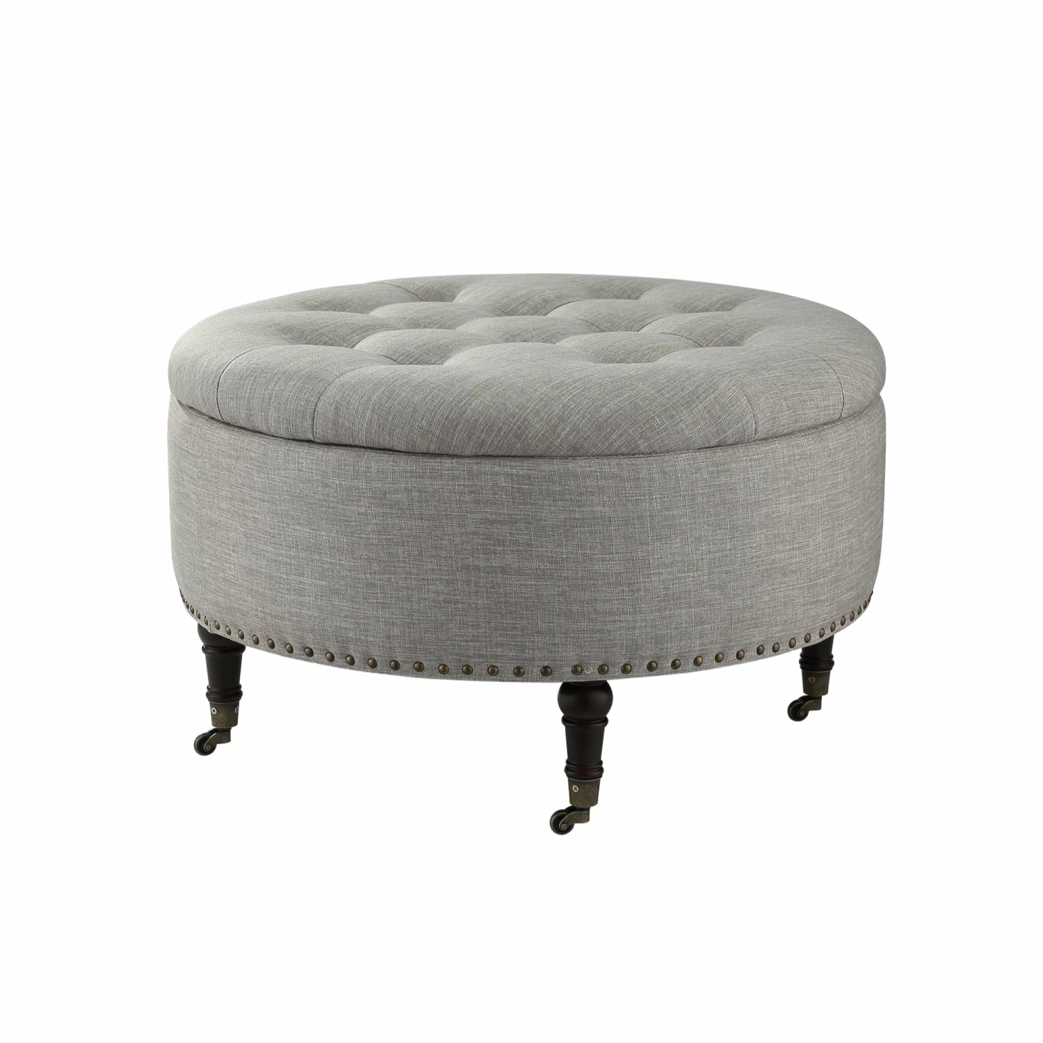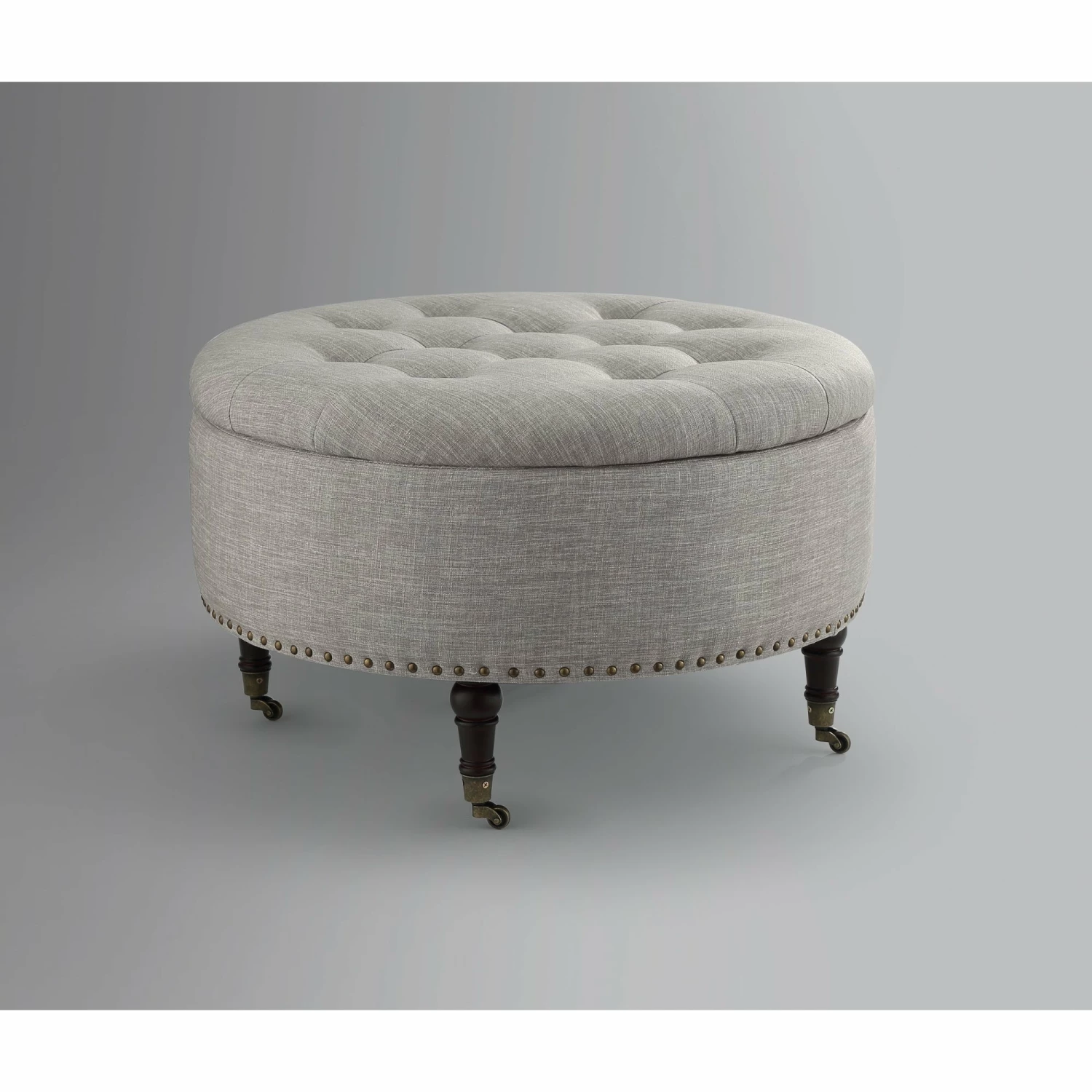 Best reviews of π₯° INSPIREDHOME CO Elizabeth Linen Round Button Tufted Nailhead Trim Rolling Storage Ottoman π