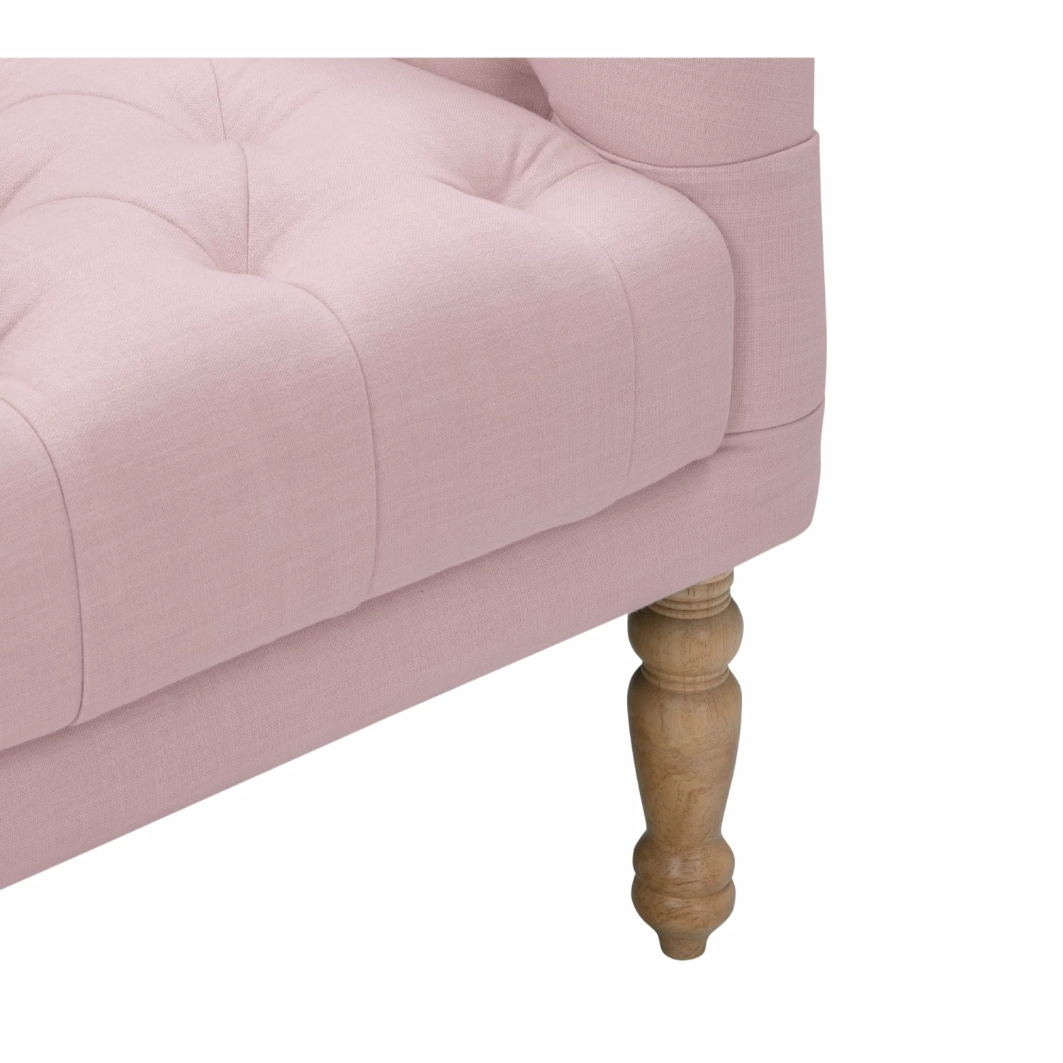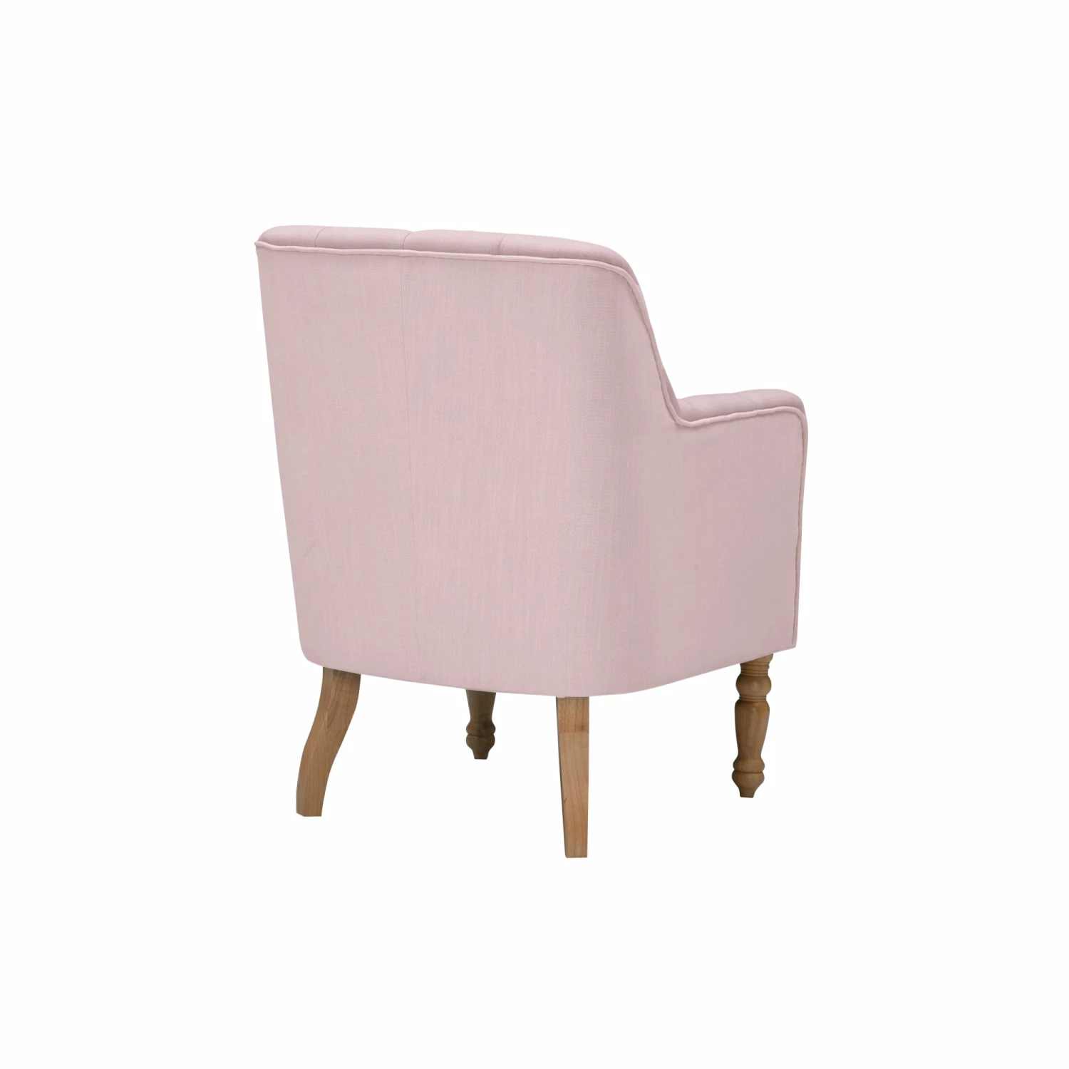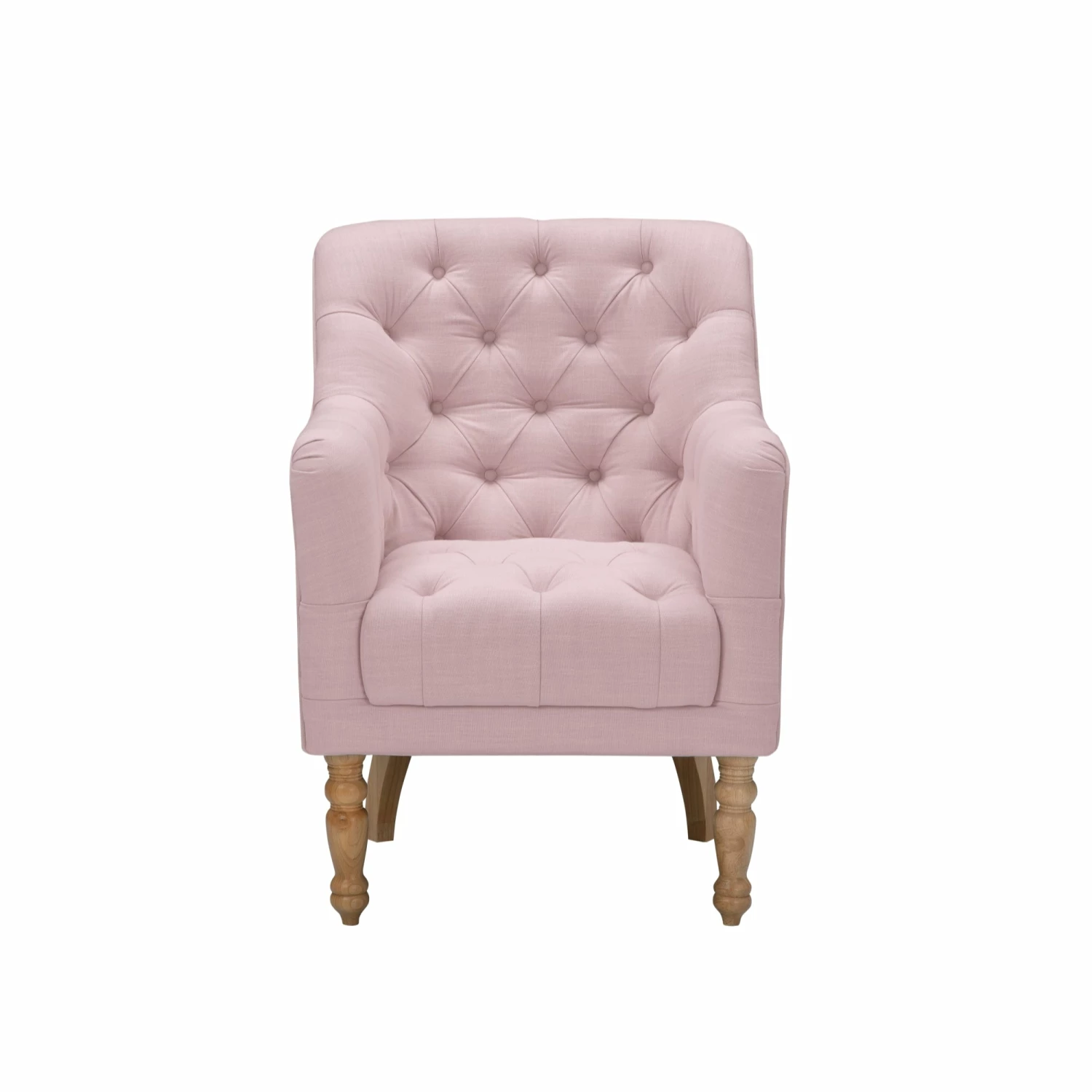 Are you looking for a chair that does more than just a spare seat? This accent piece is sure to be the one you are looking for. This timeless item has a square back and flared arms for a trendy but timeless appeal. The chair frame is made of solid and manufactured wood for long-lasting use. Speaking about comfort, this chair is covered in high-quality linen and has an upholstered button-tufted back for a textured look. This piece will make a statement in any area of your house, designed to create a classy atmosphere in your living room, bedroom, and entrance.